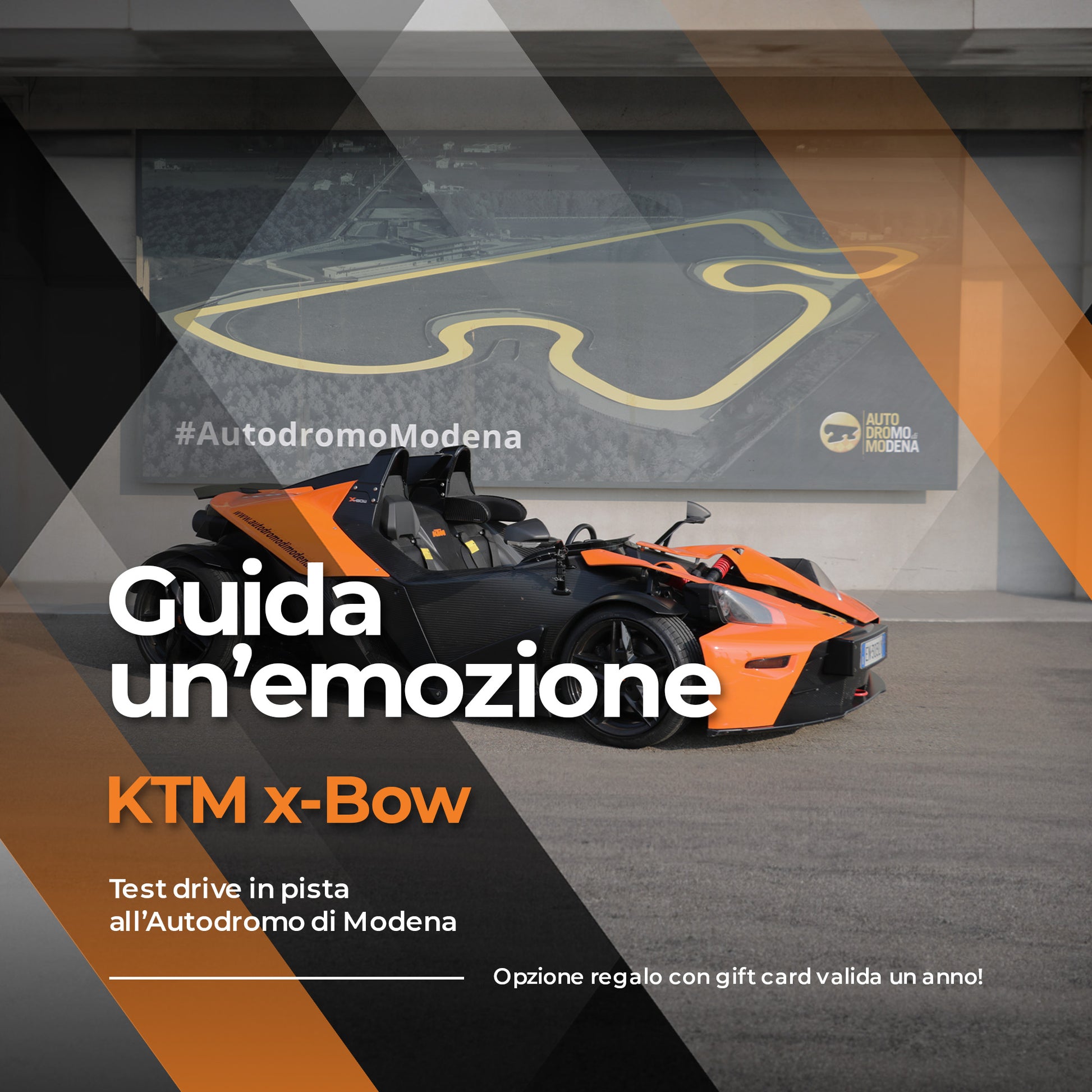 - Esperienza in pista nell’Autodromo di Modena: 5/10 giri + 1 giro di ricognizione.
