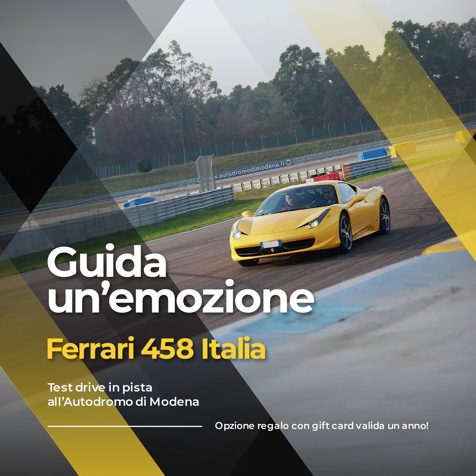 La Ferrari 458 Italia è una tra le Ferrari più adatte e divertenti per un'esperienza in pista. Una prova forte e divertente, senza la preoccupazione del traffico e dei limiti del codice della strada. Il brivido della velocità scorre in tutta la sua forza, adrenalina ai massimi livelli.